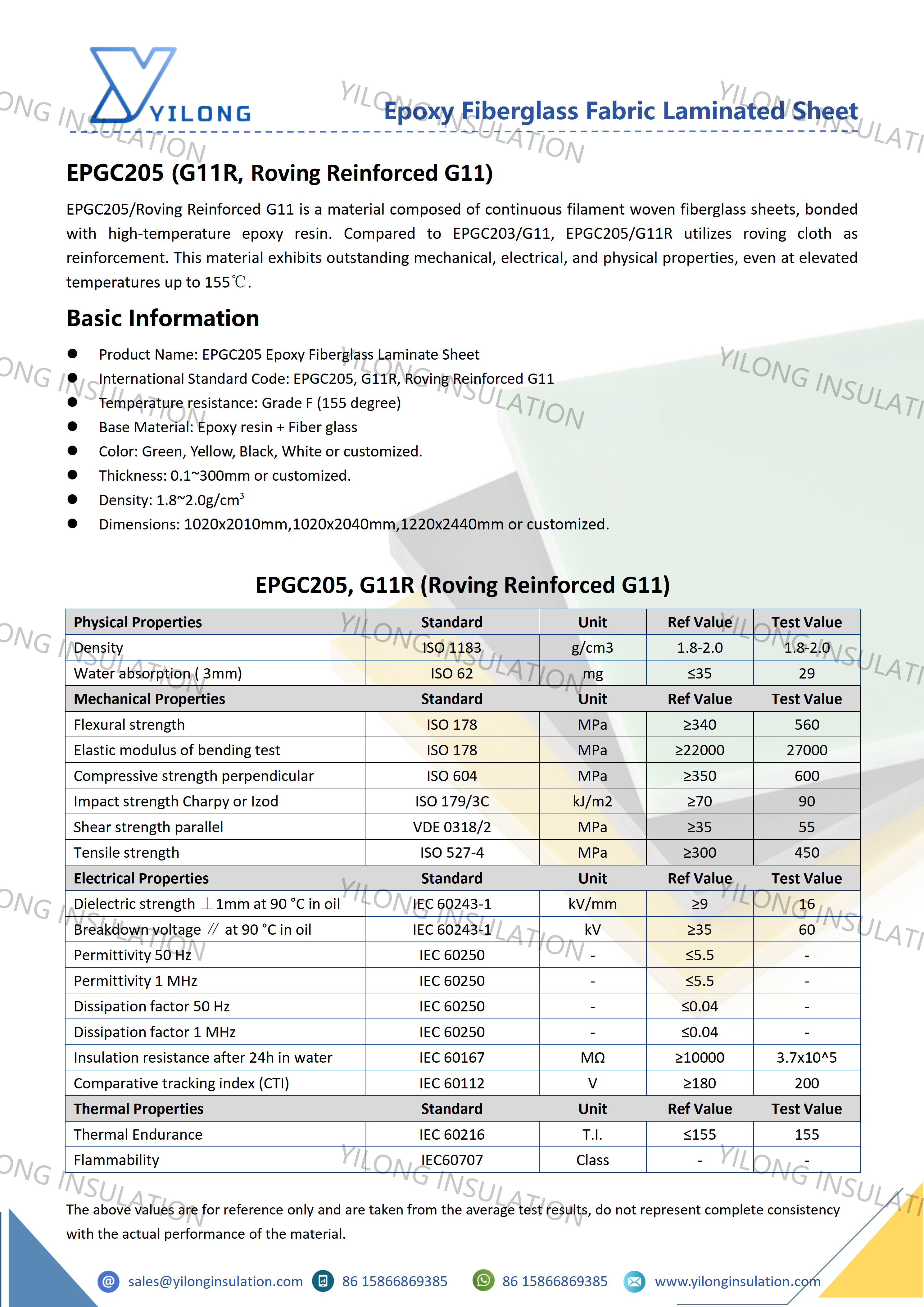 EPGC205/Roving Reinforced G11 is a material composed of continuous filament woven fiberglass sheets, bonded with high-temperature epoxy resin. Compared to EPGC203/G11, EPGC205/G11R utilizes roving cloth as reinforcement. This material exhibits outstanding mechanical, electrical, and physical properties, even at elevated temperatures up to 155℃.