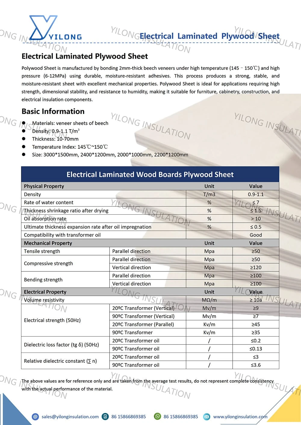 Polywood Sheet is manufactured by bonding 2mm-thick beech veneers under high temperature (145–150℃) and high pressure (6–12 MPa) using durable, moisture-resistant adhesives. This process produces a strong, stable, and moisture-resistant sheet with excellent mechanical properties. Polywood Sheet is ideal for applications requiring high strength, dimensional stability, and resistance to humidity, making it suitable for furniture, cabinetry, construction, and electrical insulation components