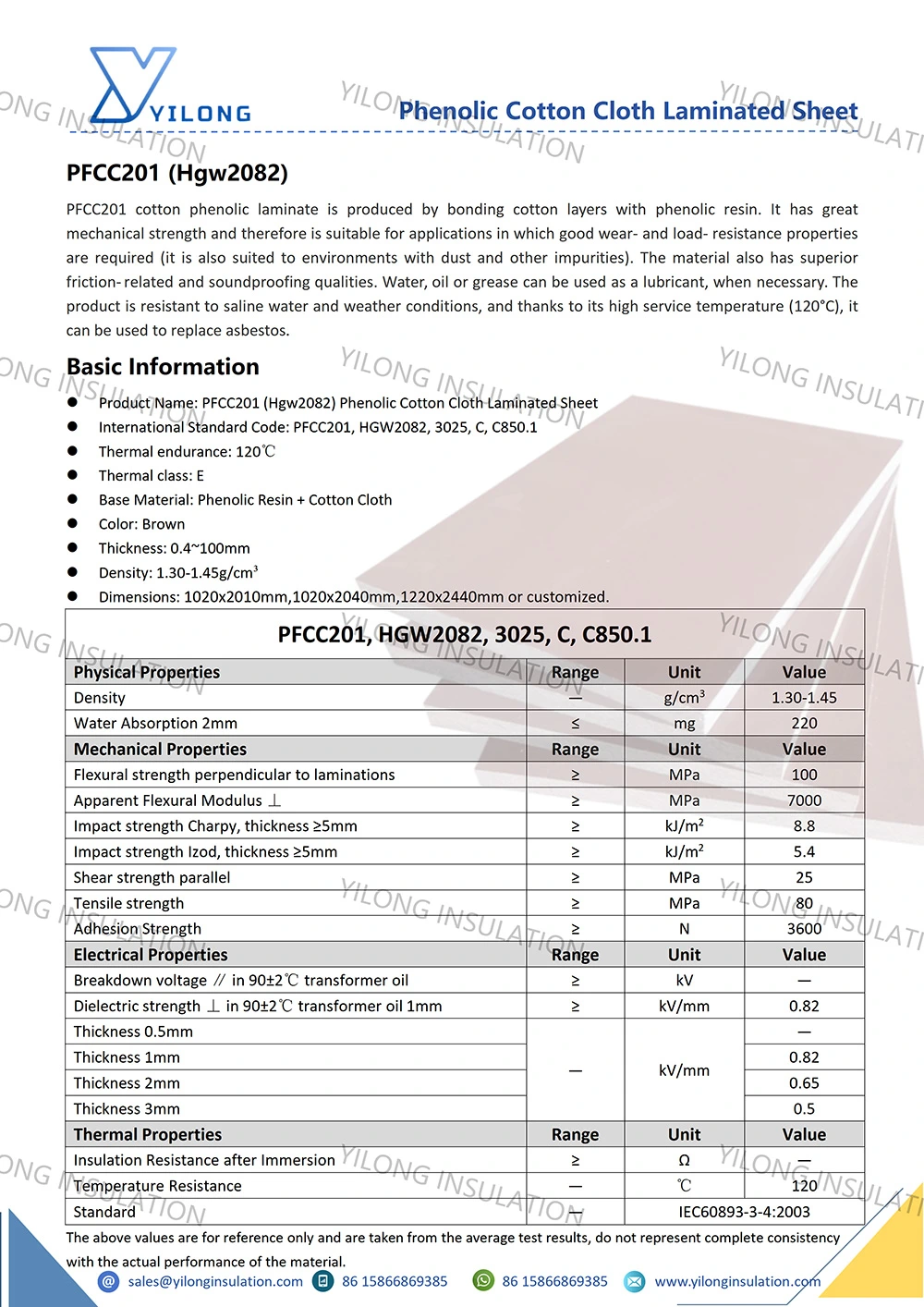 PFCC201 (Hgw2082) Phenolic Cotton Cloth Laminated Sheet